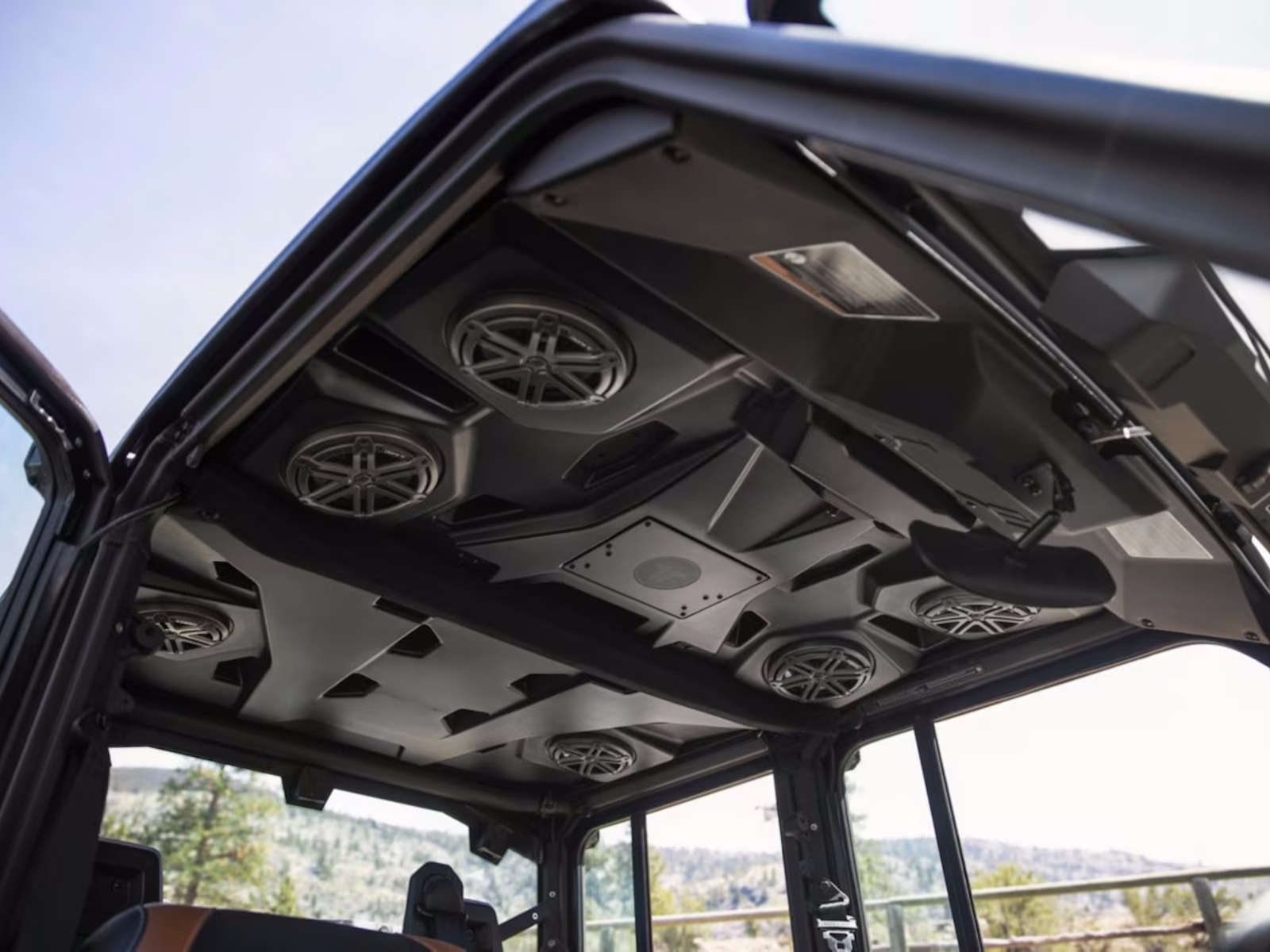 - Here's the new waterproof sound system available in option. Six 7.7’’ speakers with Bluetooth compatibility, multi-colored LEDs, an RMC amp and a genuine Rockford Fosgate audio receiver to crank up your playlists when you’re out there in the fields herding or baling to the beat of your own drum. Sounds good? You bet!